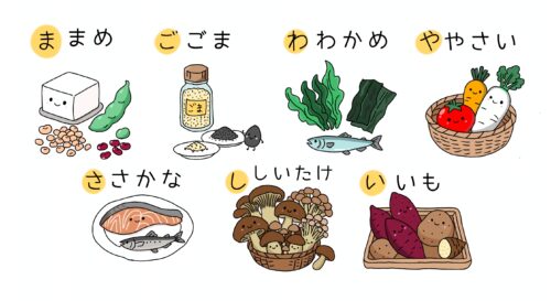 日本の伝統的な食文化に基づいた“バランスのよい食材の頭文字”をまとめたもので、
